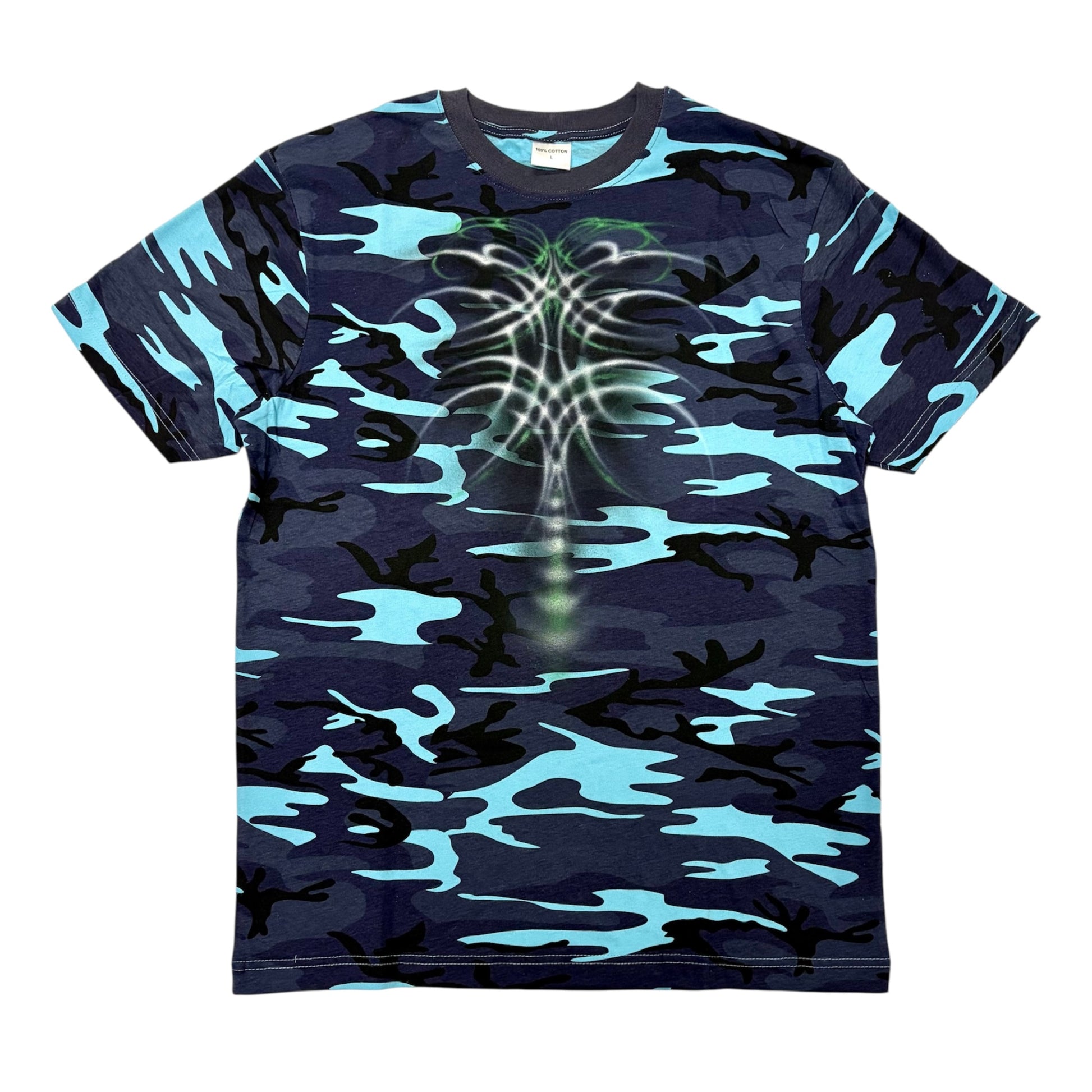1/1 airbrushed t shirt. 100 percent cotton. Fits large.