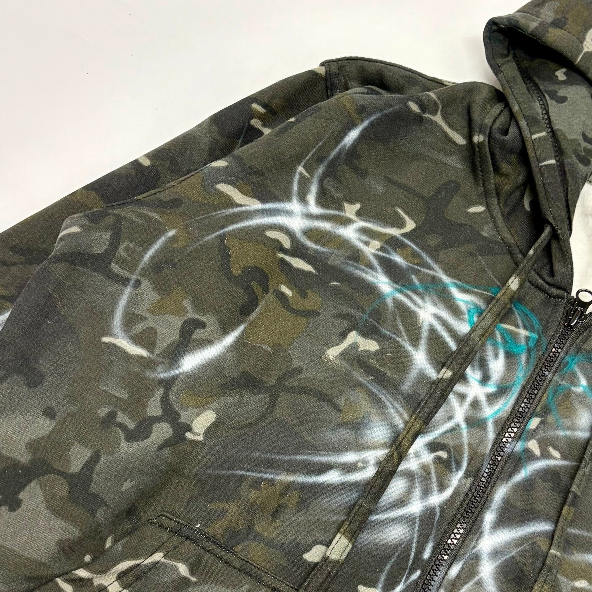 1/1 airbrushed zipped camo hoodie. Fits size M.