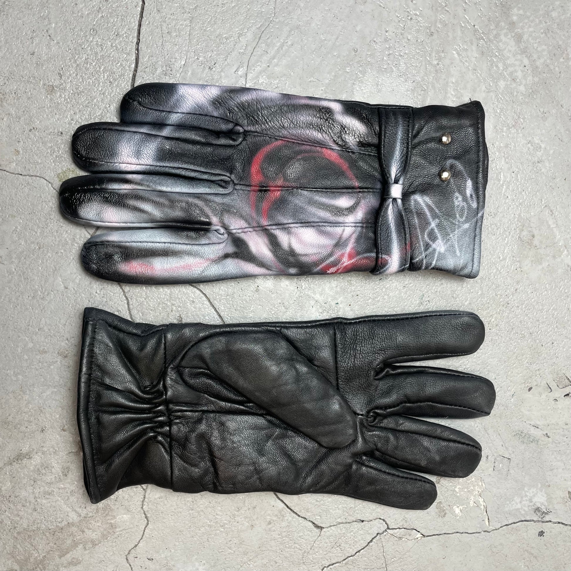 1/1 airbrushed faux leather gloves. Stud detailing on the cuff.