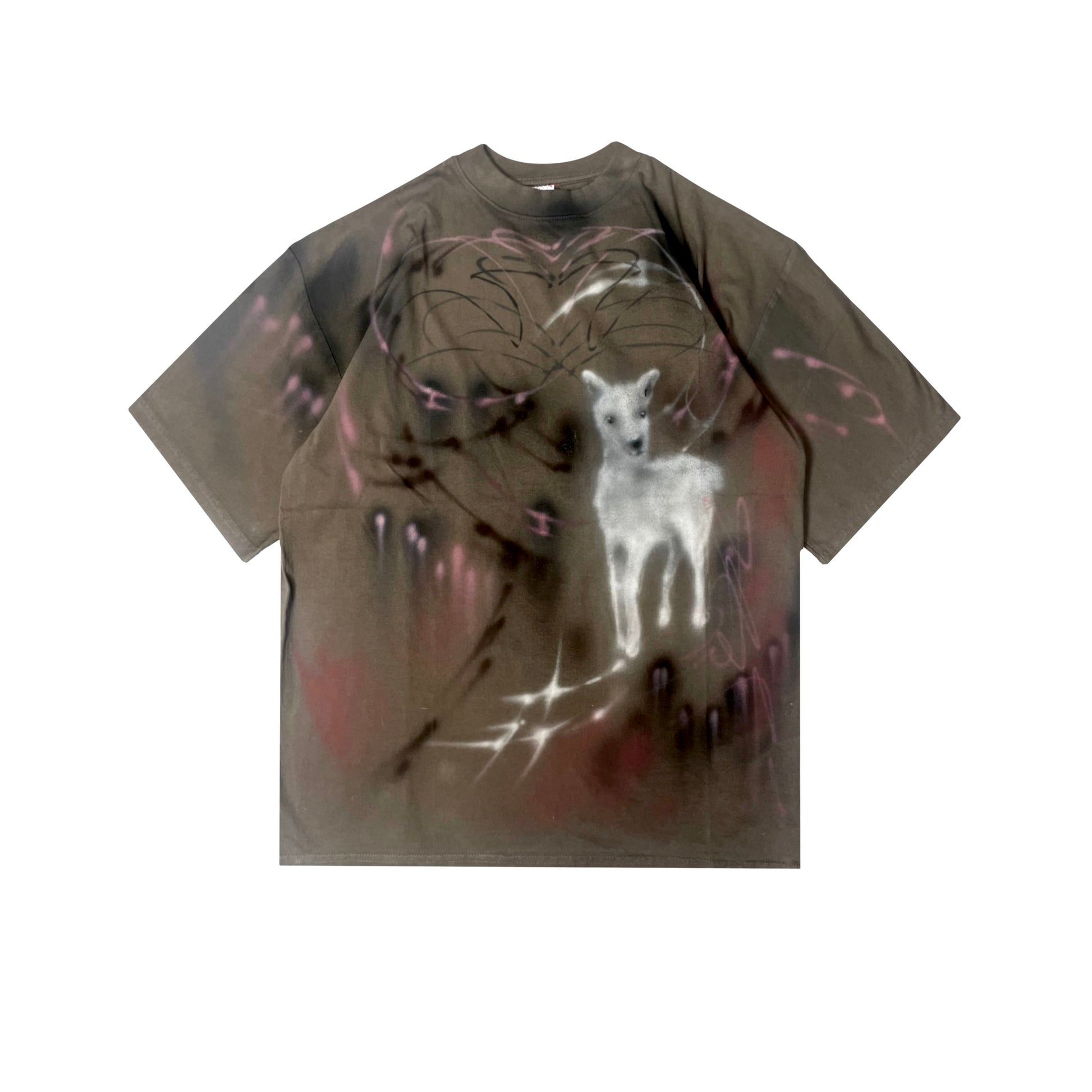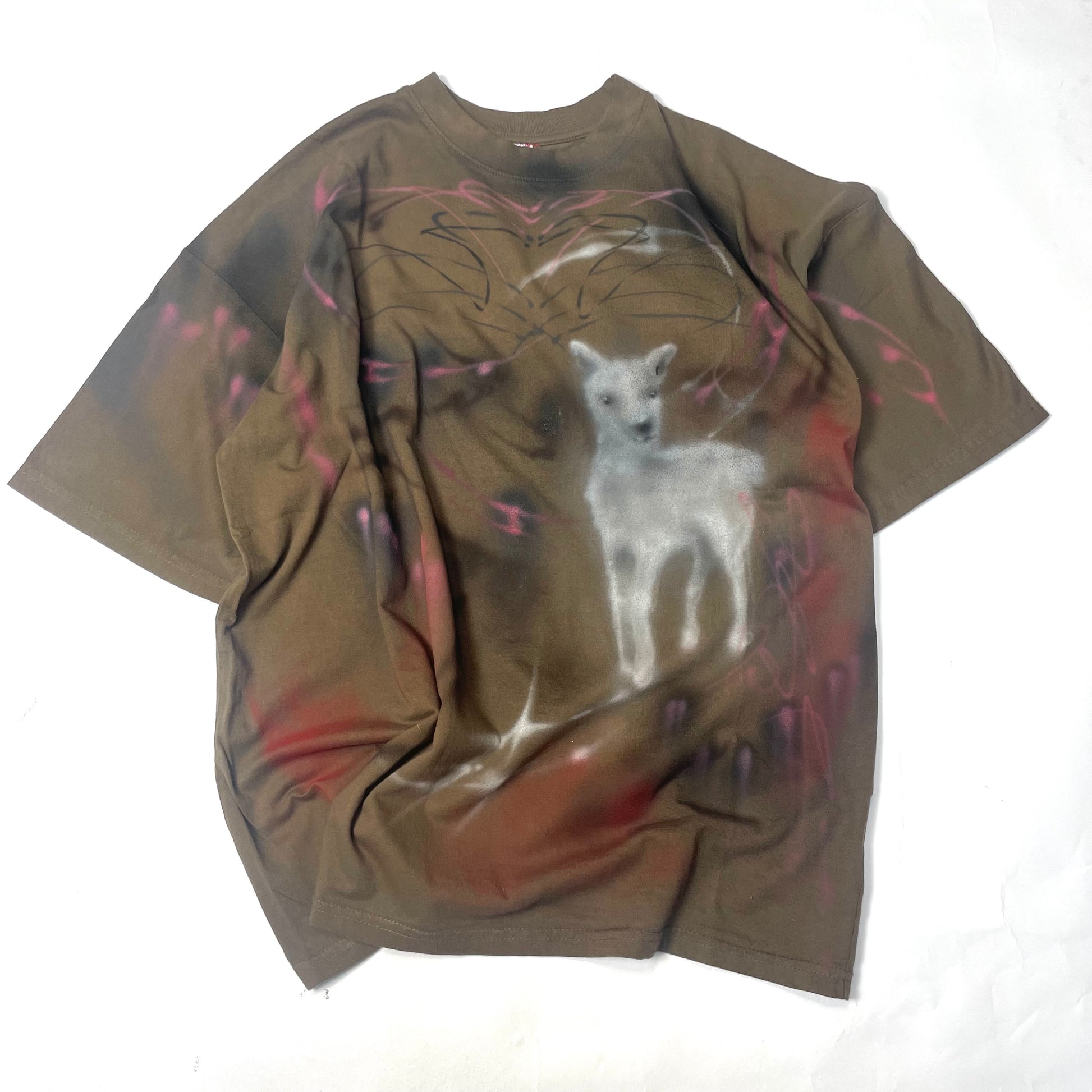 1/1 airbrushed short sleeve. Heavyweight organic cotton, boxy fit. Fits size L.
