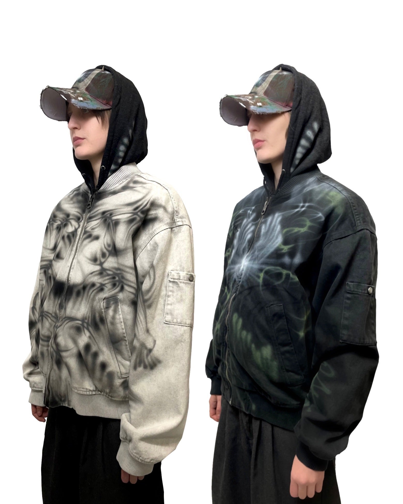 1/1 airbrushed cotton bomber jacket. Heavy cotton twill. Fits baggy size M.